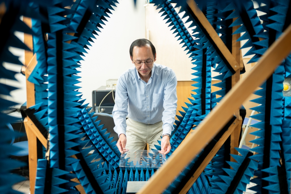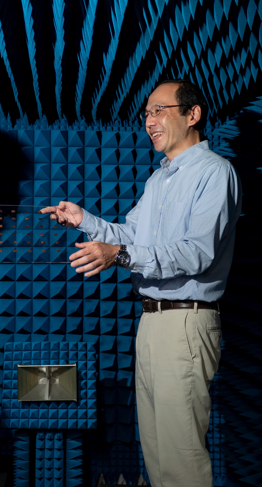 最新の情報通信技術を実現するための電磁環境(EMC: Electromagnetic Compatibility)対策技術に関する研究を行っています。世の中の電磁環境を整備するためには、電磁環境対策材料である電波吸収体・遮へい材の研究開発が欠かせません。本研究では、不要電磁波を抑制するこれまでにはない新たなマイクロ波・ミリ波帯用電波吸収体、遮へい材の設計・開発を進めています。さらに電磁波有効利用として、所望の周波数帯の電磁波を全て通過させる電磁波透過材の開発も行っています。
