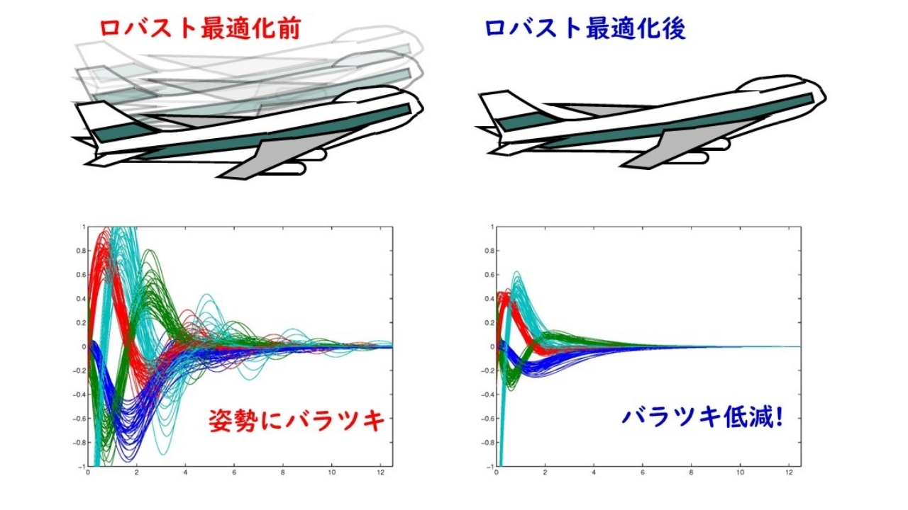 ものの動きのデザインを不確定な状況で行うためのアルゴリズムを研究しています。ものの動きを予測するために用いるモデルが不正確な場合、その誤差も考慮して最悪ケースでも暴走しないようにデザインする必要があります。考慮しなければならない状況は無数に存在するため、数値的に設計を行うことは困難ですが、それに対処するため、乱数を用いて有限個の状況について設計を行うことを提案しています。計算負荷と得られる解の精度のバランスをとりつつ、頑健性をもった動きをデザインすることが可能です。