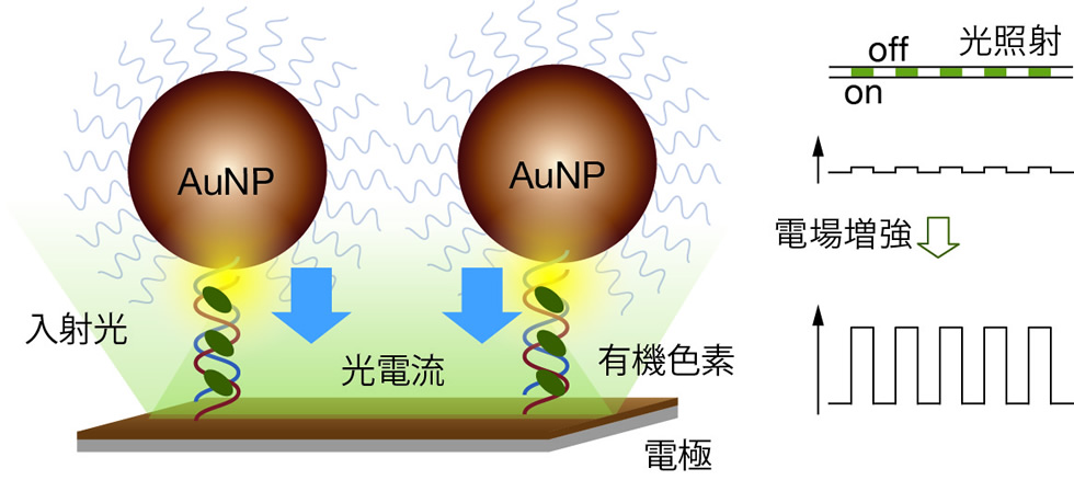 光を吸収して電気信号に変換する能力を持つ化学修飾された人工核酸を作製し、特定の化学物質や生体分子の存在下で光を照射したときの電流が変化するシステムを開発しています。