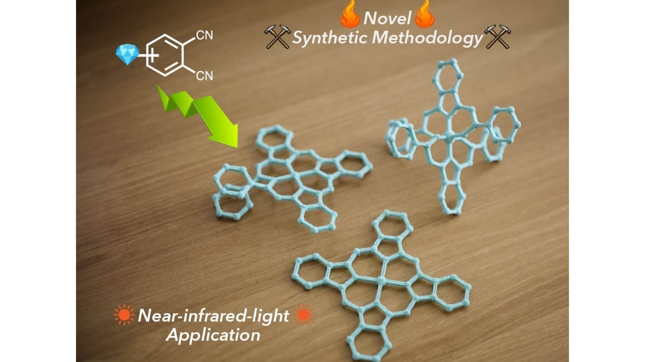 光スペクトルのうち太陽光に多数含まれ、高い透過性や安全性を持つ近赤外光を活用できる新材料を有機合成化学の手法を用いて開発します。基礎的な有機反応論を用いて工業色素を見直すことで新材料を設計し、時には合成法自体を新たに開発することなどにより実際に合成します。これらの材料はエネルギー・医療・環境など様々な分野で確実なニーズが存在し、産業界からも大きく注目を集めています。基礎(理学)を極めることで社会に役に立つ分子を世に送る工学的研究です。