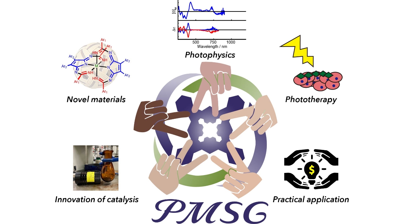 科学者や産業界が持つ問題を分子の言葉(構造)に翻訳し、共同で課題解決を目指します。化学分野だけでなく、物理学や生物学など全くの異分野から持ち込まれる問題に対し、丁寧な聞き取りと考察を通して解決のための具体的材料を提案します。私たちが有するオンリーワンの分子群には無限の可能性があるはずであり、これがハブとなることで新理論、新技術が広がることが願いです。分子の力を必要とする方はお気軽にご相談ください。