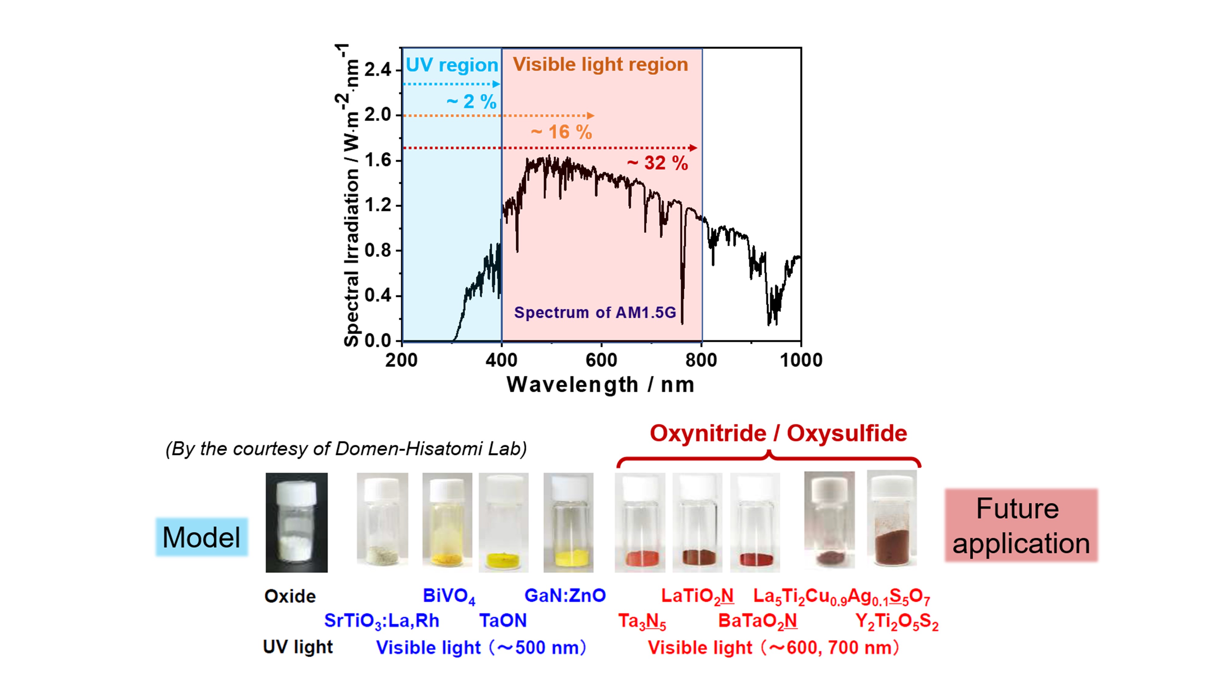 太陽光を効果的に活用し、人工光合成反応を実用化するためには、長波長光に反応する光触媒の開発が不可欠です。現在、様々な光触媒が報告されていますが、本研究ではその効率化と安定化を目指しています。特に注目している水分解反応や過酸化水素生成反応は、クリーンなエネルギー源として利用され、工業生産や環境浄化などの領域にも応用されます。これらの物質を大量かつ低コストで生産することができれば、カーボンニュートラルな社会の実現に寄与できると考えています。