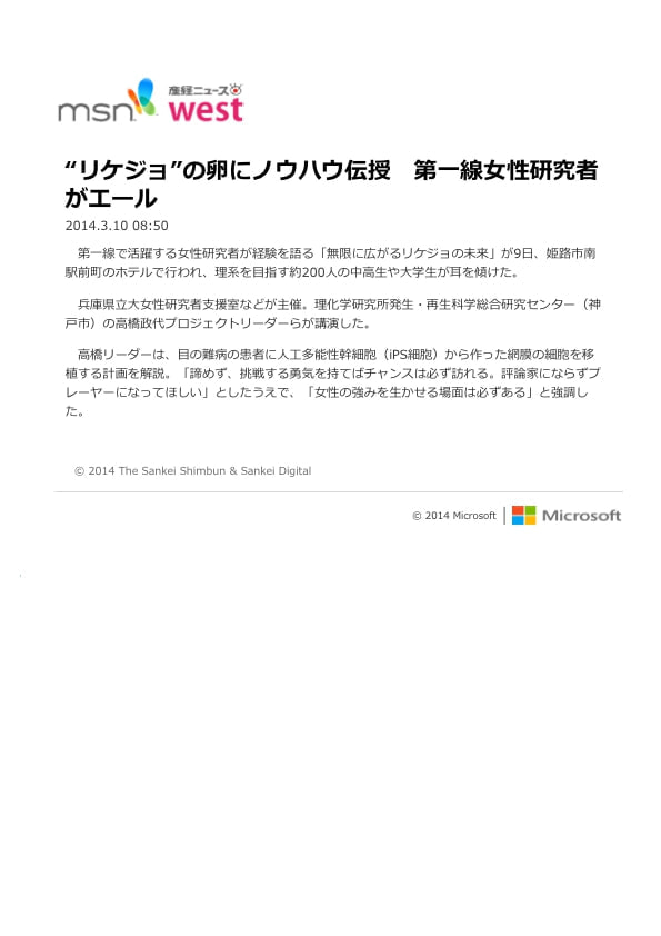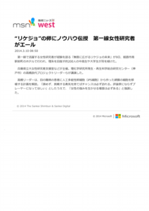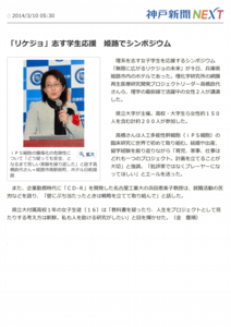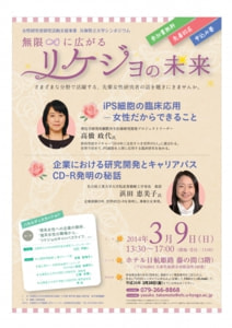 - 3月9日にホテル日航姫路にて,「無限∞にひろがるリケジョの未来」と題したシンポジウムを開催します.基調講演には,iPS細胞の臨床応用で注目を浴びる理研の高橋先生と,太陽誘電時代CD-Rを開発された名工大の浜田先生をお招きし,アカデミックと企業における先生方のご活躍と女性のキャリアパスについてお話頂く予定です.三浦もパネリストで出ます.本シンポジウムはリケジョならびにリケジョ希望者向けですが,女性限定と言うわけでもありません.姫路近郊で興味のある方は,是非お申し込みの上ご参加下さい.