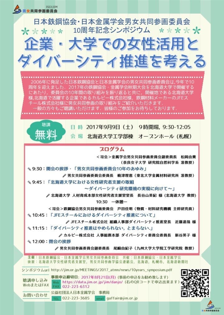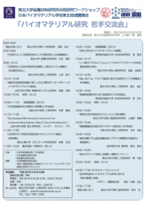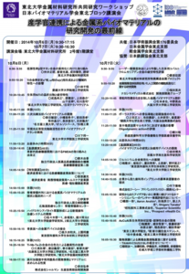 - 来る10月6日-7日,東北大学金研ワークショップ&日本バイオマテリアル学会東北ブロック講演会「産官学連携による金属系バイオマテリアルの研究開発の最前線」が開催されます.