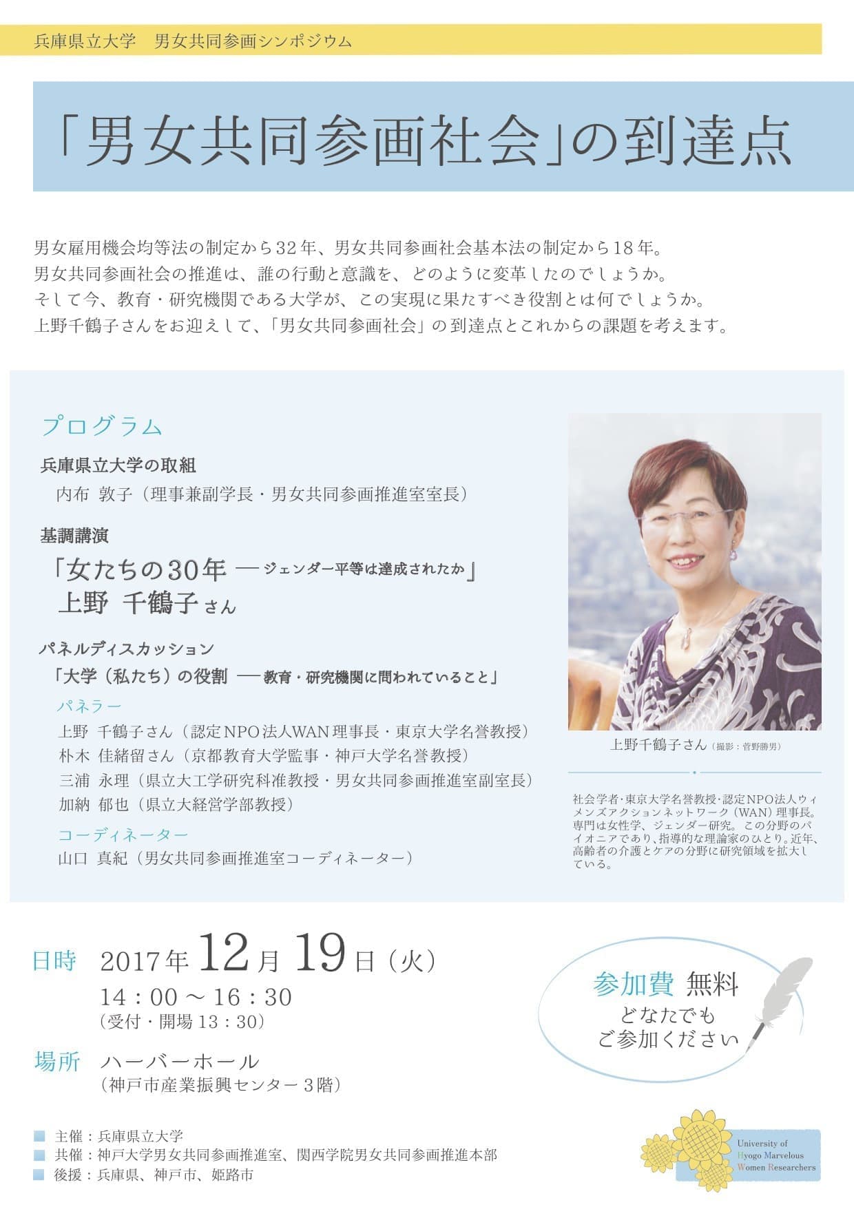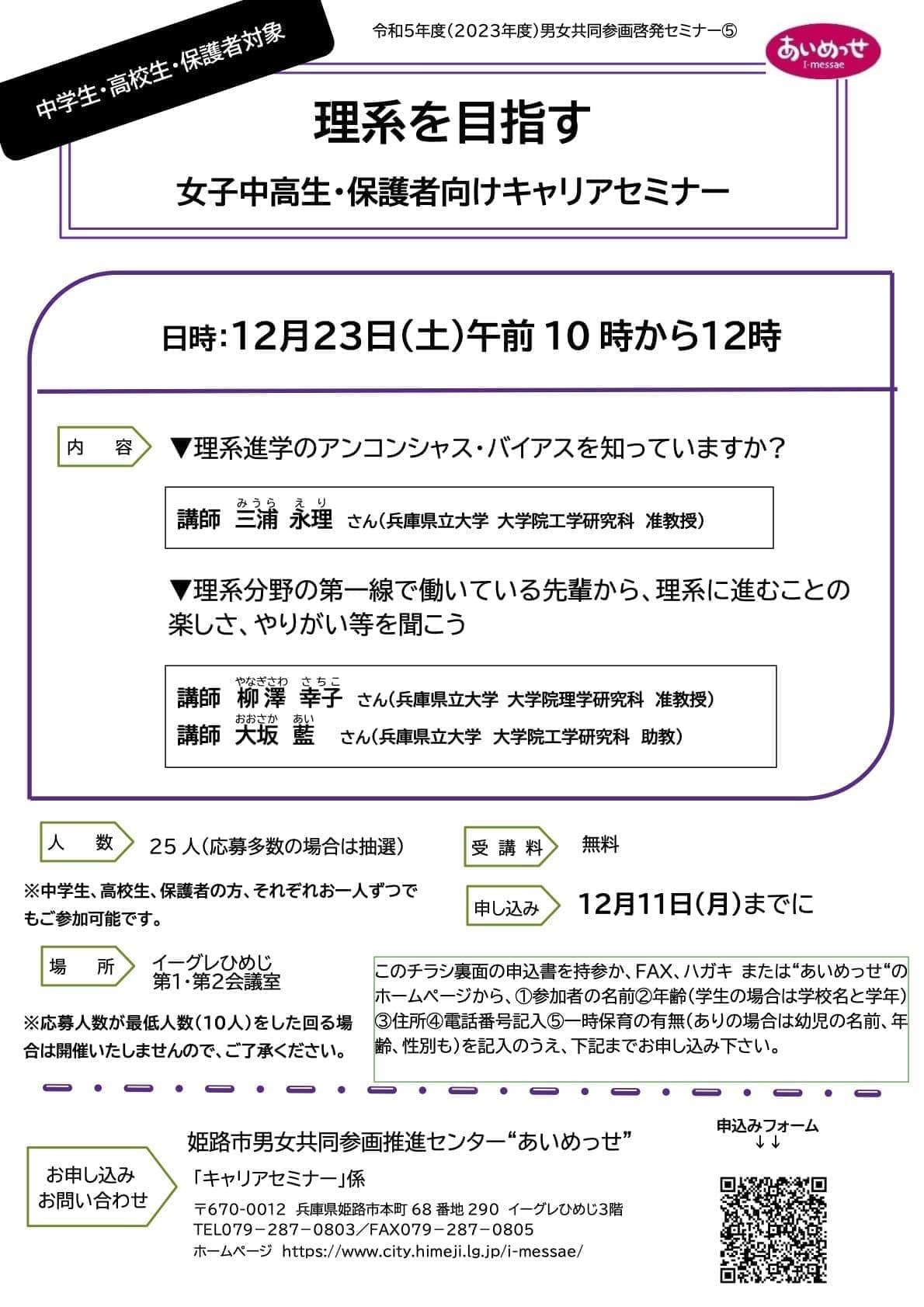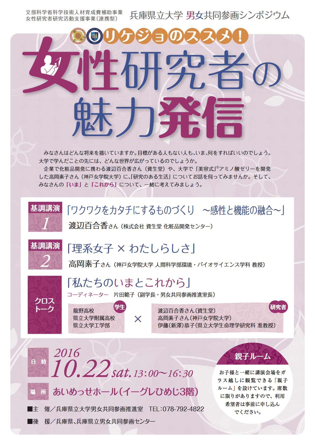 - 【特別企画】(姫路市男女共同参画推進課・センター”あいめっせ”・兵庫県立大学女性研究者支援室共催)