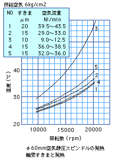 空気軸受の発熱は空気の剪断抵抗によって軸受スキマの空気が発熱し、主軸・ハウジングに伝達され、熱変形につながる。
